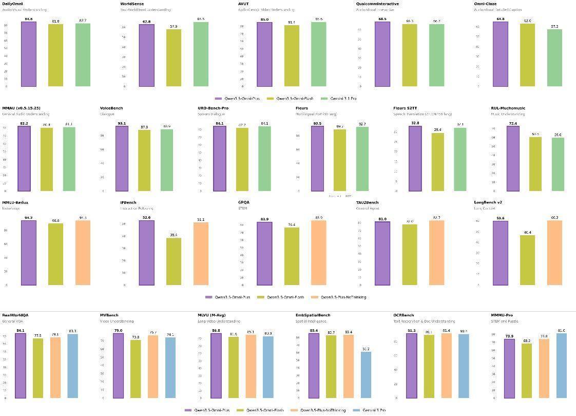 在音视频理解、识别、交互等215项任务中,Qwen3.5-Omni取得SOTA(性能最佳),超越Gemini-3.1 Pro,成为目前全球最强的全模态大模型之一。